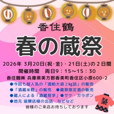 香住鶴 2026年「春の蔵祭」開催予定! 3/20-21(金土)
